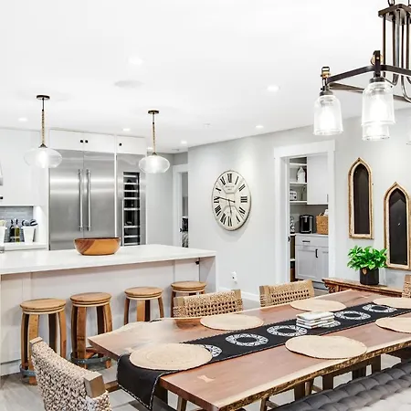 The 3-bedroom Brand New Listing - Windsor “ Winetopia ” Getaway Villa is less than approximately 25 minutes' walk from Windsor Town Green. There is a kitchen with a microwave, a fridge, and glassware while 3 bathrooms are included as well.